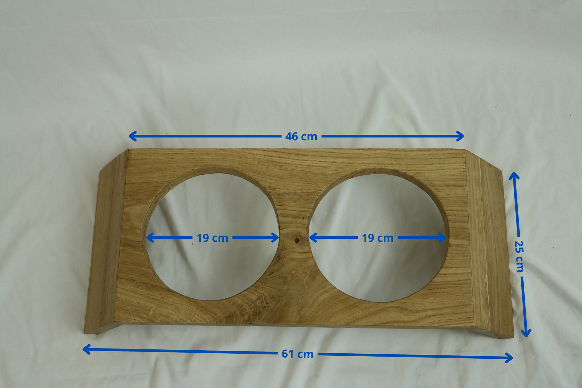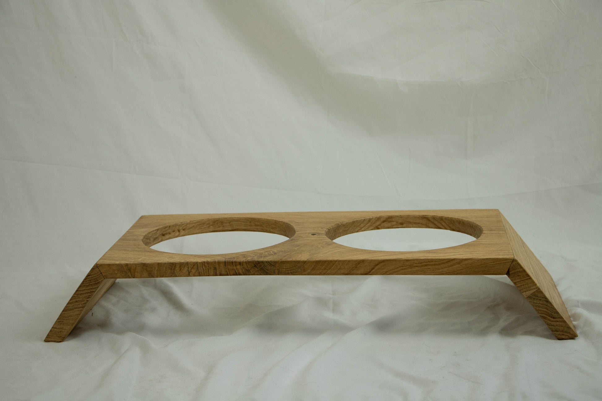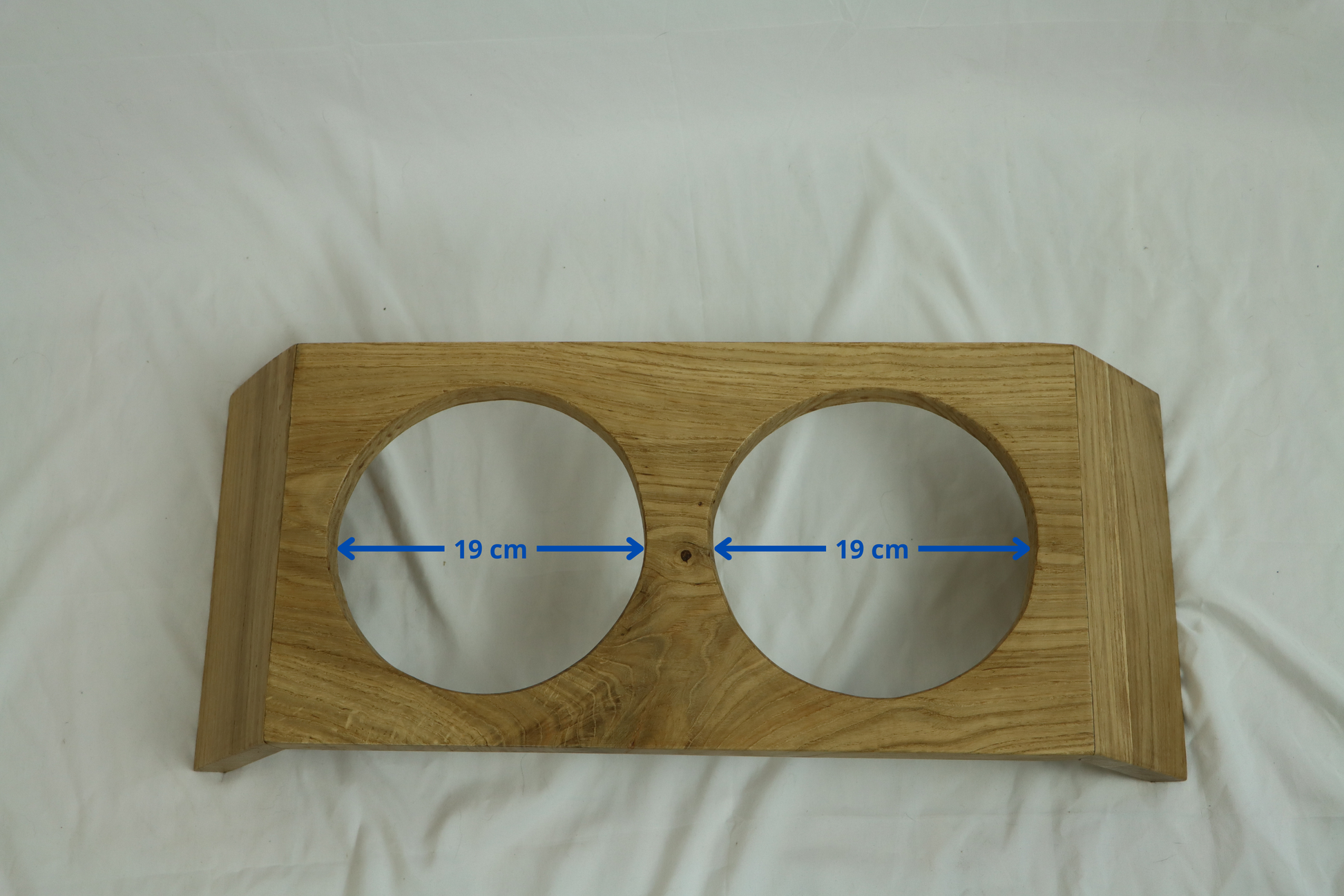 Maßgeschneidert für Ihre Bedürfnisse. Die Standardlöcher haben einen Durchmesser von 19 cm. Sollte Ihr Hund jedoch Näpfe mit einem anderen Durchmesser bevorzugen, fertigen wir diese individuell für Sie an. Jeder Ständer wird in sorgfältiger Handarbeit und mit viel Liebe zum Detail gefertigt.